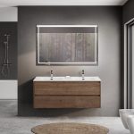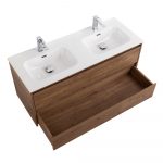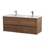 BelBagno — Тумба с раковиной на две чаши подвесная KRAFT 120 Rovere Tabacco , раковина белая