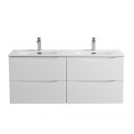 И модель тумбы с четырьмя выкатными ящиками для раковины с двумя чашами шириной 1200 мм.