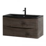 BelBagno — Тумба с раковиной подвесная ACQUA 100 Rovere Nature Grigio, раковина чёрная