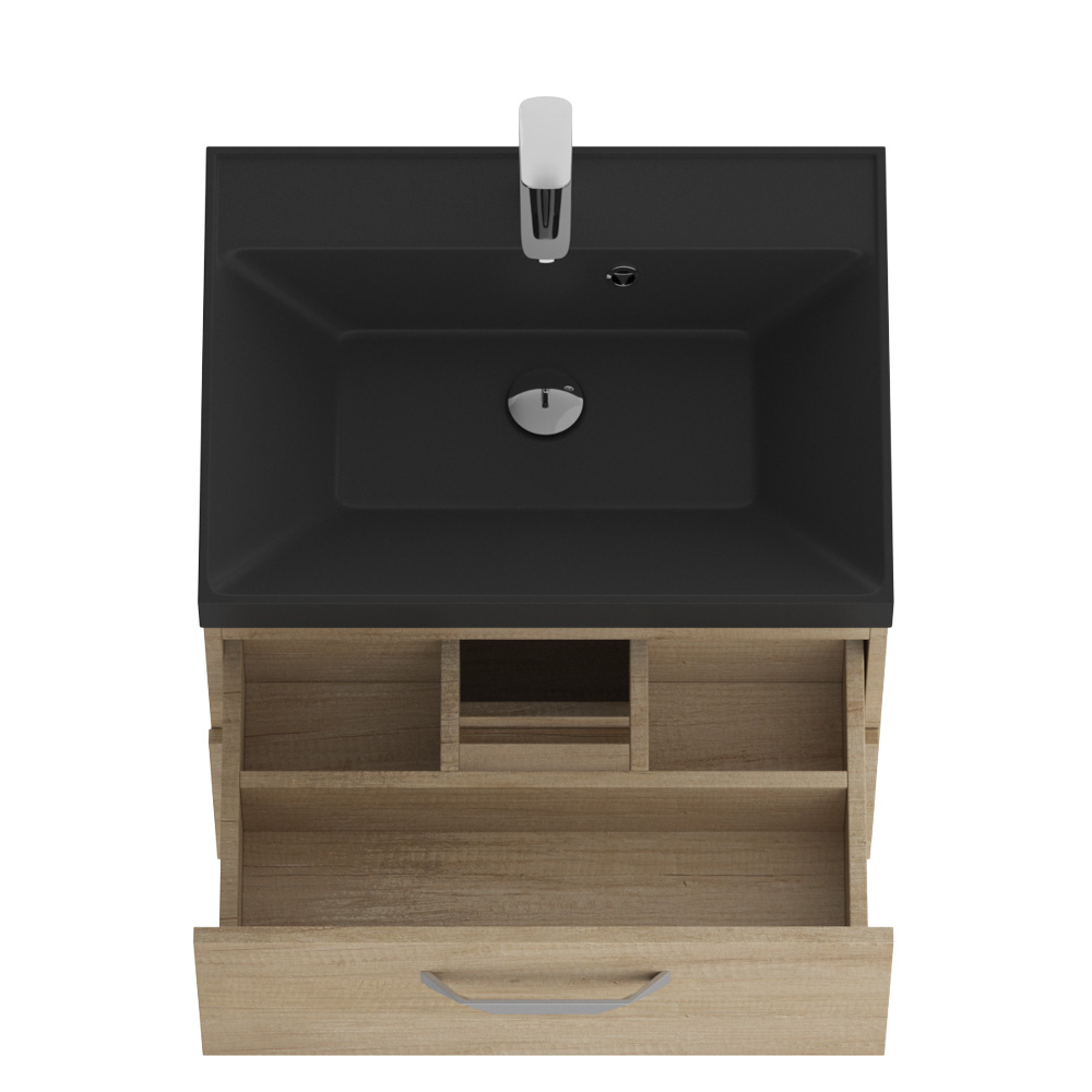 BelBagno — Тумба с раковиной подвесная AURORA 60 Rovere Nebrasca Nature, раковина чёрная