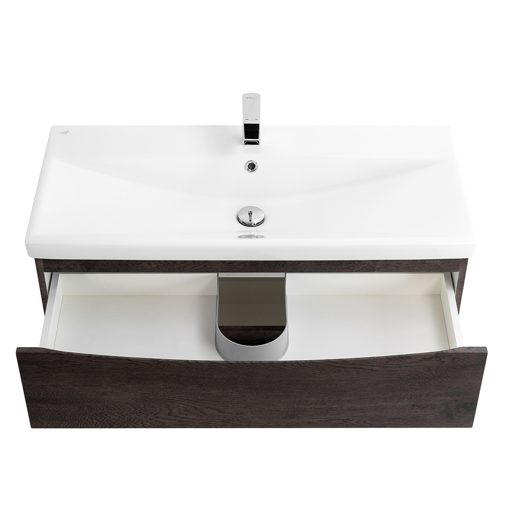 Комплект поставки: • Тумба • Раковина с декоративной накладкой на отверстие перелива в цвете хром, 1 отверстие под смеситель,