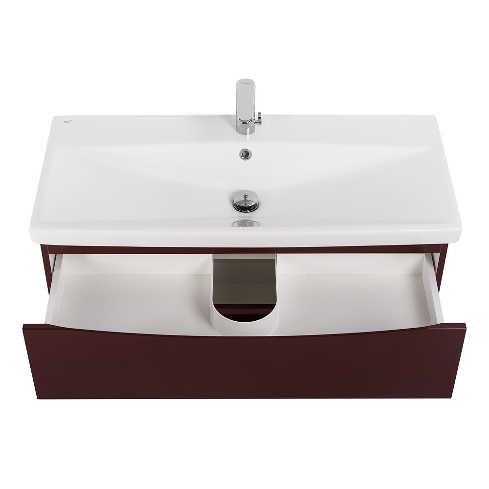 Главная Сантехника Мебель для ванных комнат BelBagno — Тумба с раковиной подвесная MARINO-CER 90 Bordo Lucido, раковина белая