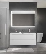 И модель тумбы с четырьмя выкатными ящиками для раковины с двумя чашами шириной 1200 мм.