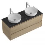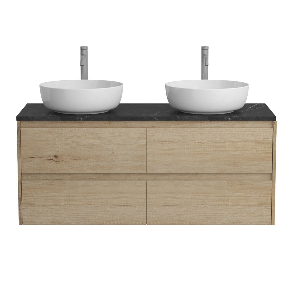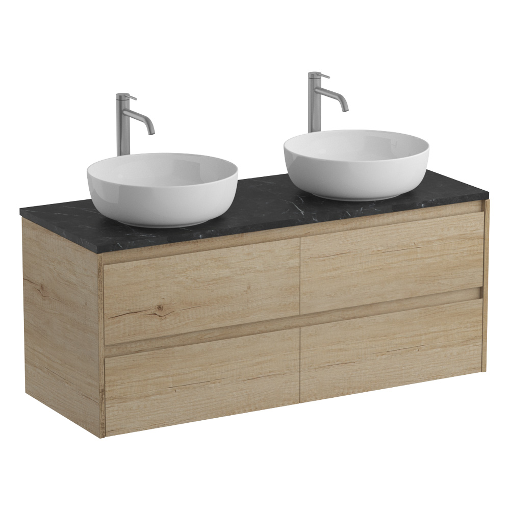 BelBagno - Тумба с четырьмя ящиками, столешницей и накладными раковинами подвесная  KRAFT 120 Rovere Galifax Bianco