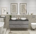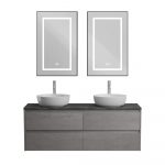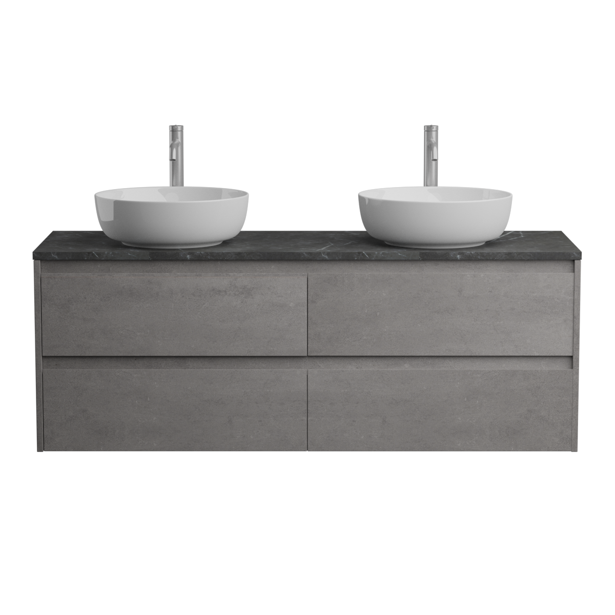 BelBagno — Тумба с четырьмя ящиками, столешницей и накладными раковинами подвесная KRAFT 140 Cemento Grigio
