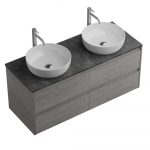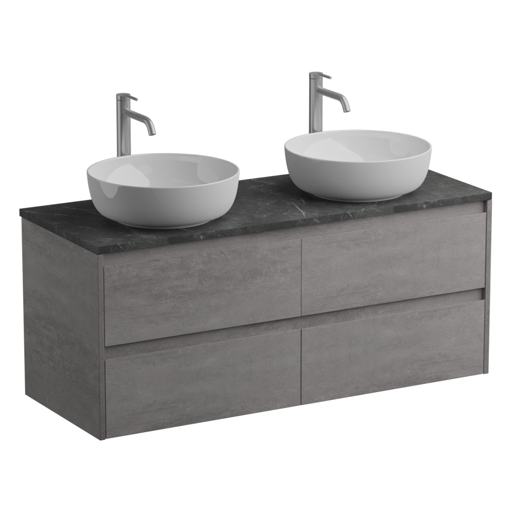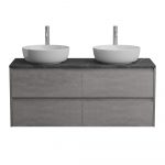 BelBagno — Тумба с четырьмя ящиками, столешницей и накладными раковинами подвесная KRAFT 120 Cemento Grigio