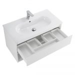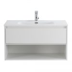 Главная Сантехника Мебель для ванных комнат BelBagno — Тумба c раковиной подвесная с одним ящиком и одной открытой полкой KRAFT 90 Bianco Opaco, раковина белая