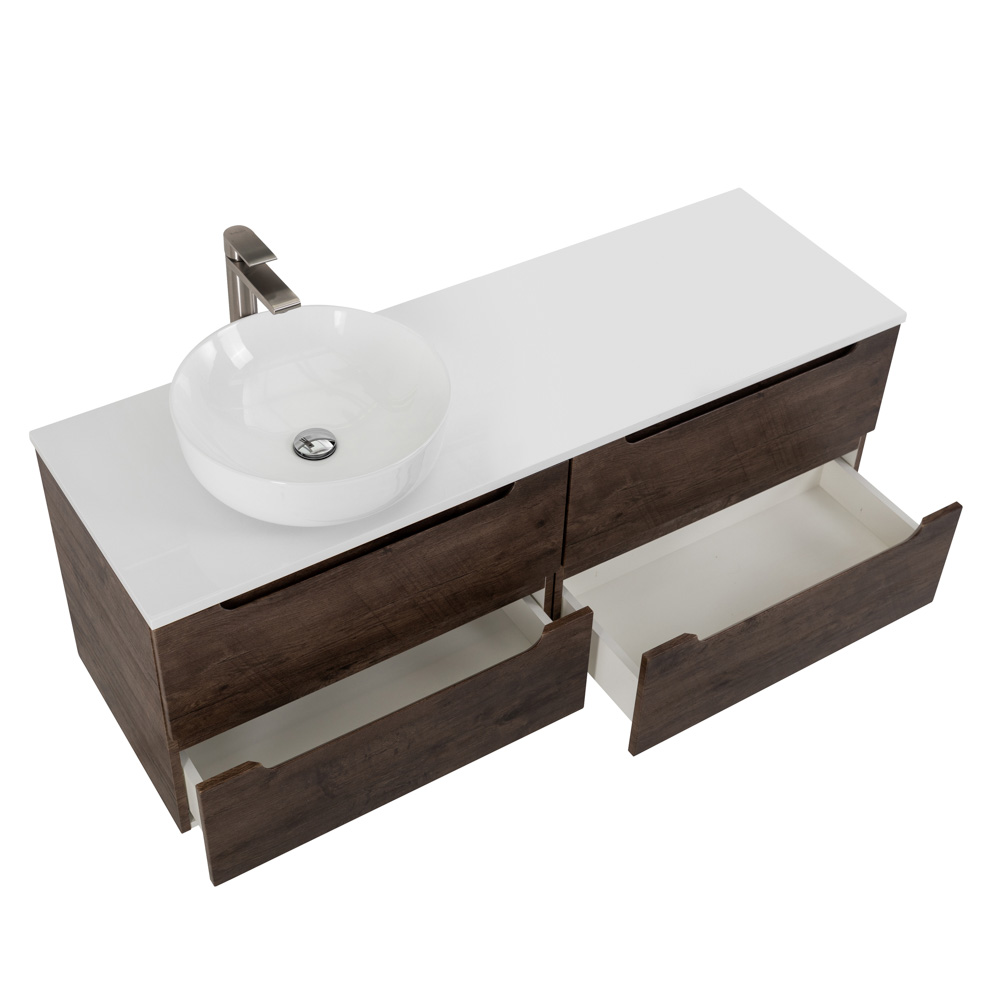 Главная Сантехника Мебель для ванных комнат BelBagno — Тумбы со столешницей подвесная ETNA 120 Rovere Moro, раковина слева