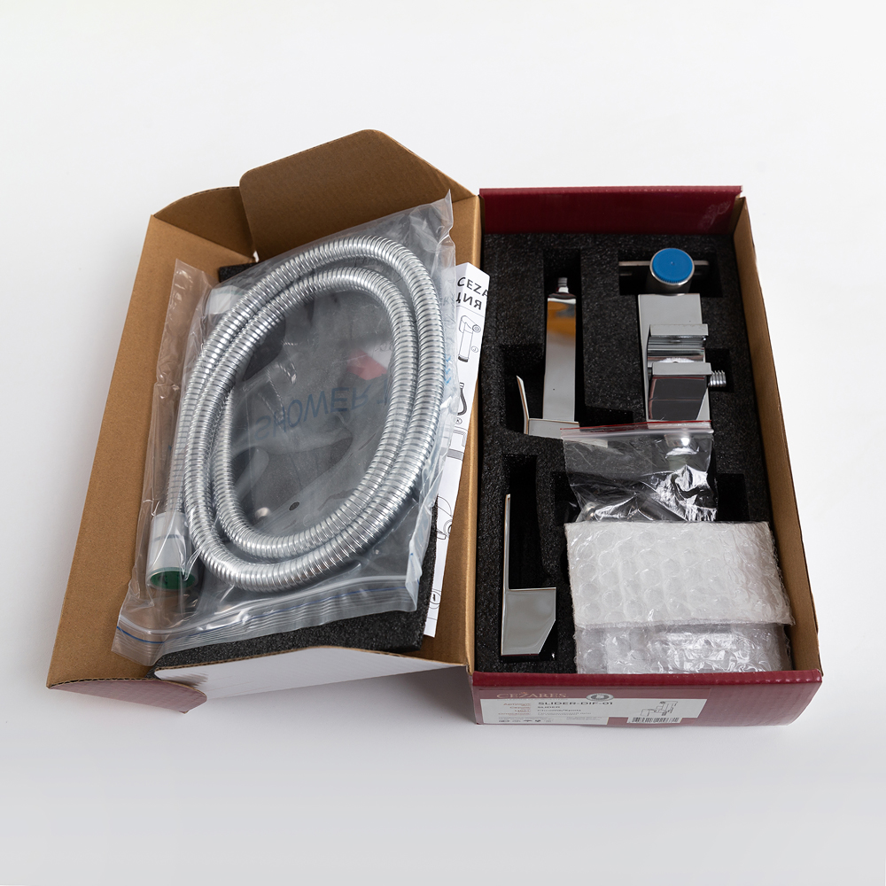 •В комплекте со смесителем: душевая лейка из нержавеющей стали, душевой шланг из нержавеющей стали 120 см, держатель душевой лейки