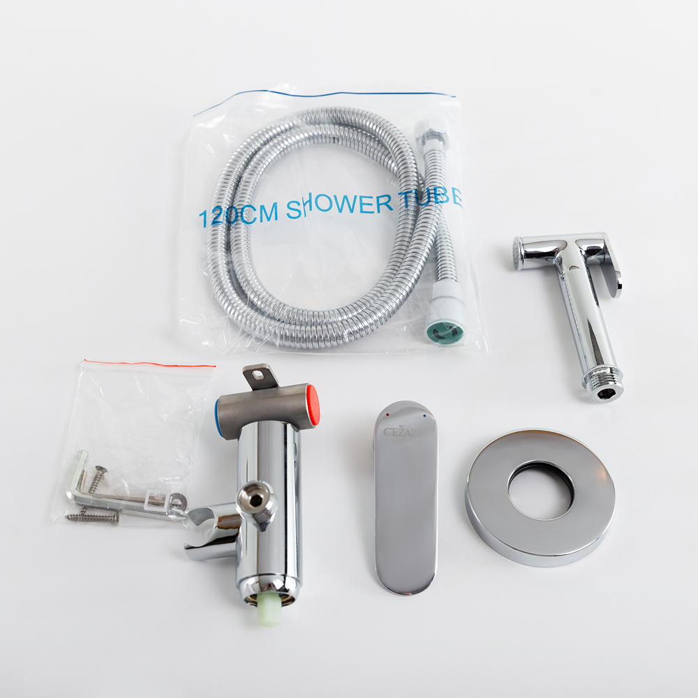 •В комплекте со смесителем: душевая лейка из ABS-пластика, душевой шланг из нержавеющей стали 120 см, держатель душевой лейки