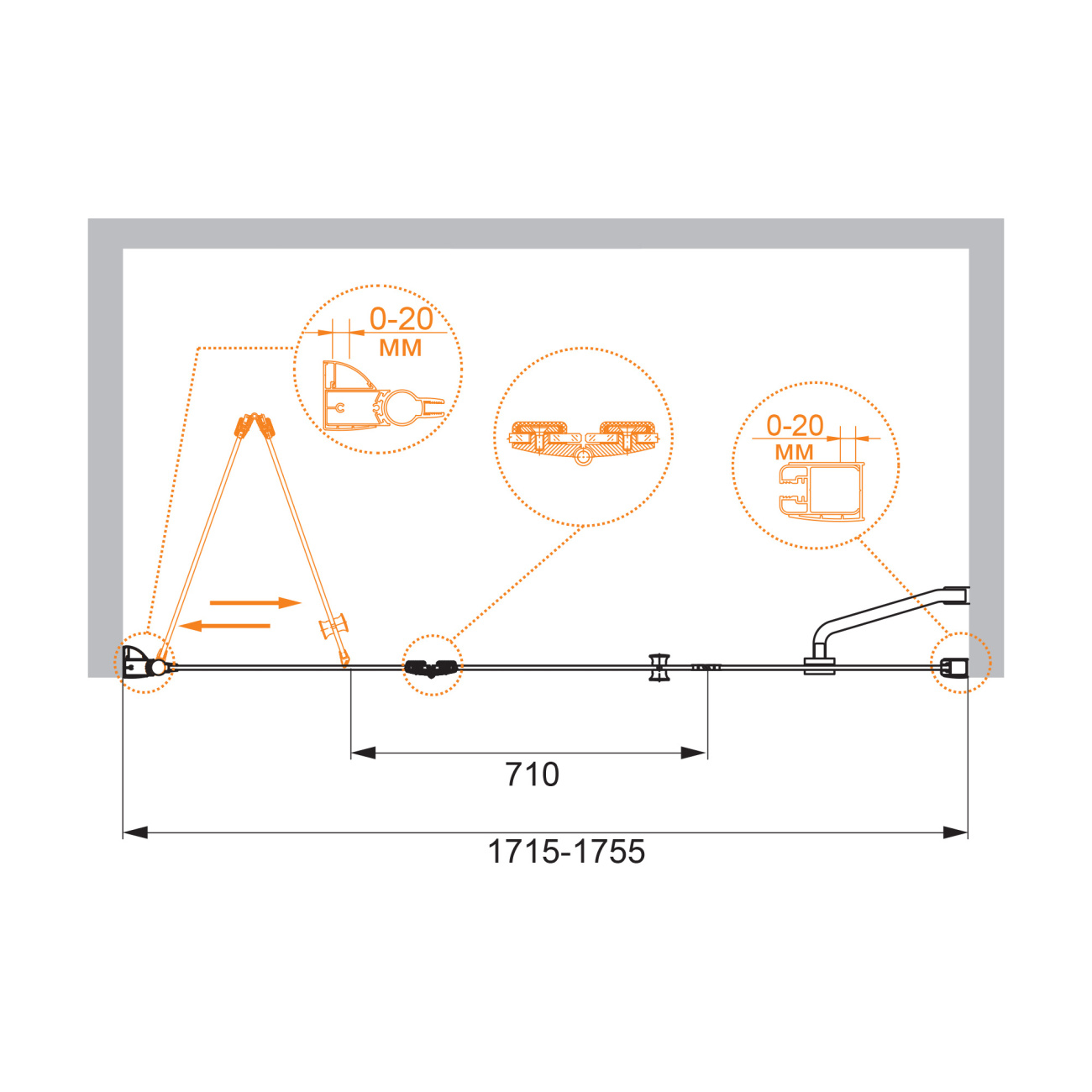 CEZARES - Душевая дверь  ELENA-W-B-22-200-P-Cr