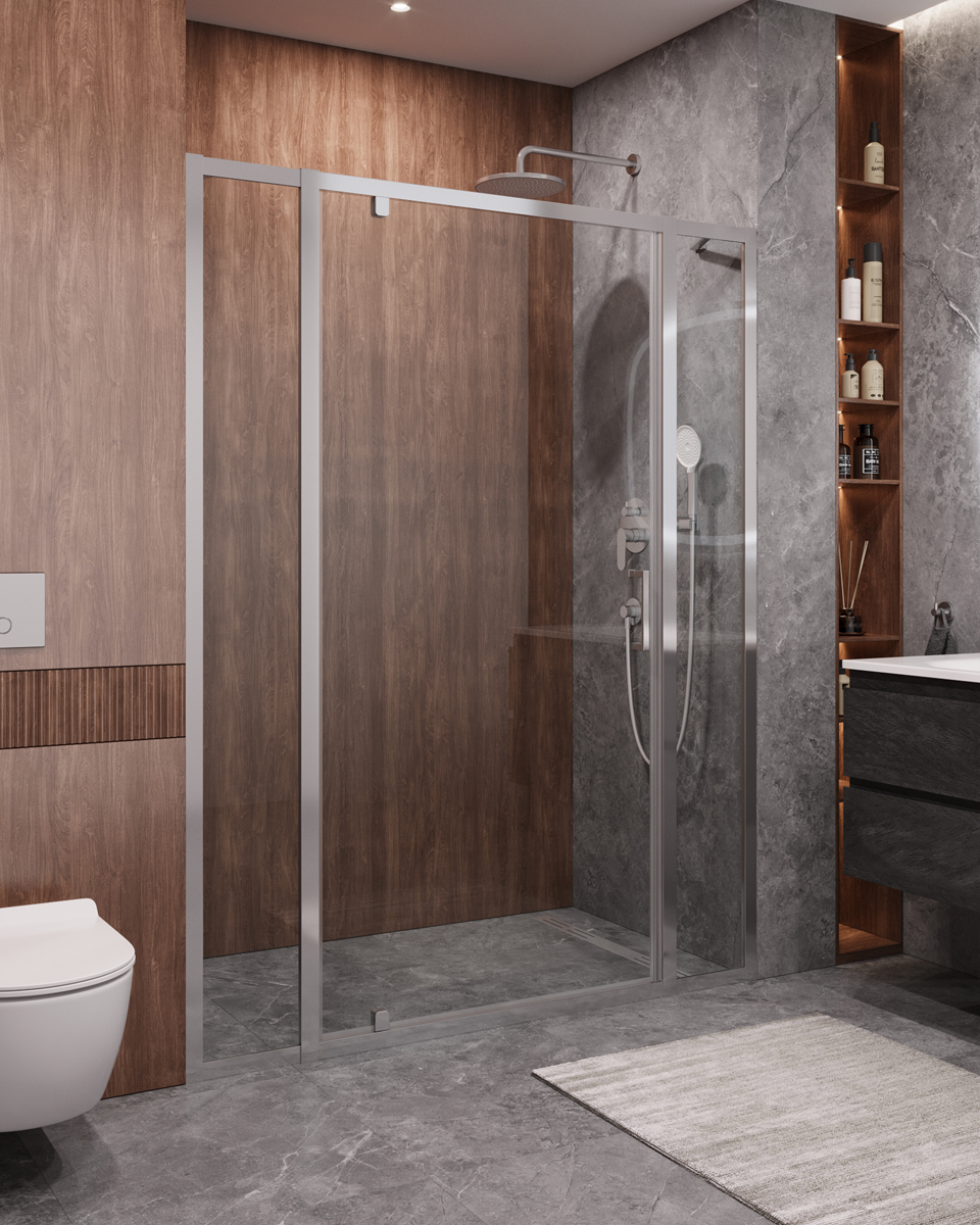 Уникальное решение для защиты ванной комнаты от брызг. Бескаркасное стекло душевой перегородки walk-in расширяет пространство и добавляет ему элегантности. Душевые