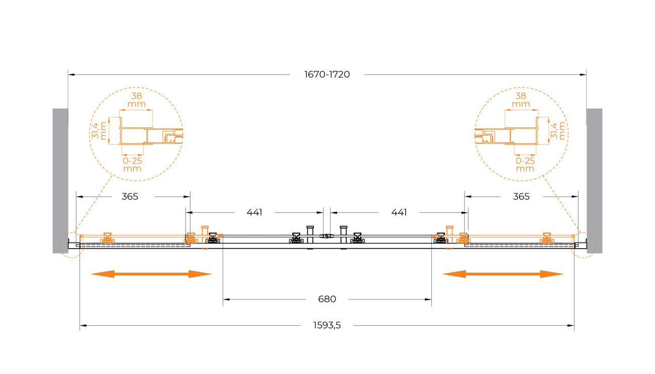 Ширина изделий до 180 см с уникальной возможностью создания еще больших размеров за счет дополнительных неподвижных элементов шириной 20 и 30 см.