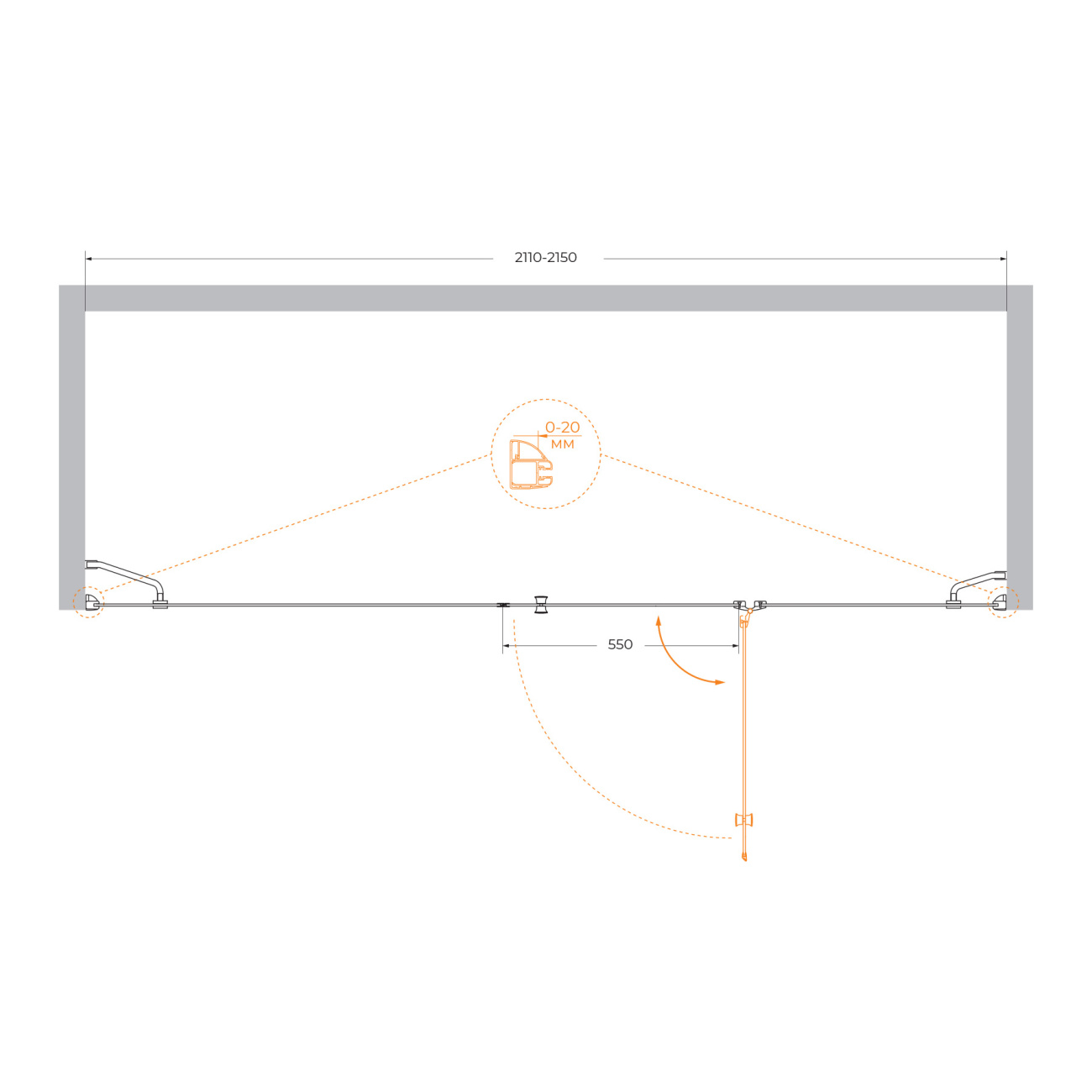 Акватек — Душевая дверь, распашная 200х100, оружейная сталь
