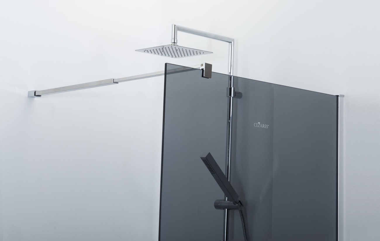 Оригинальный телескопический кронштейн позволяет регулировать ширину душевой зоны (и входа) в диапазоне 75 — 105 см.