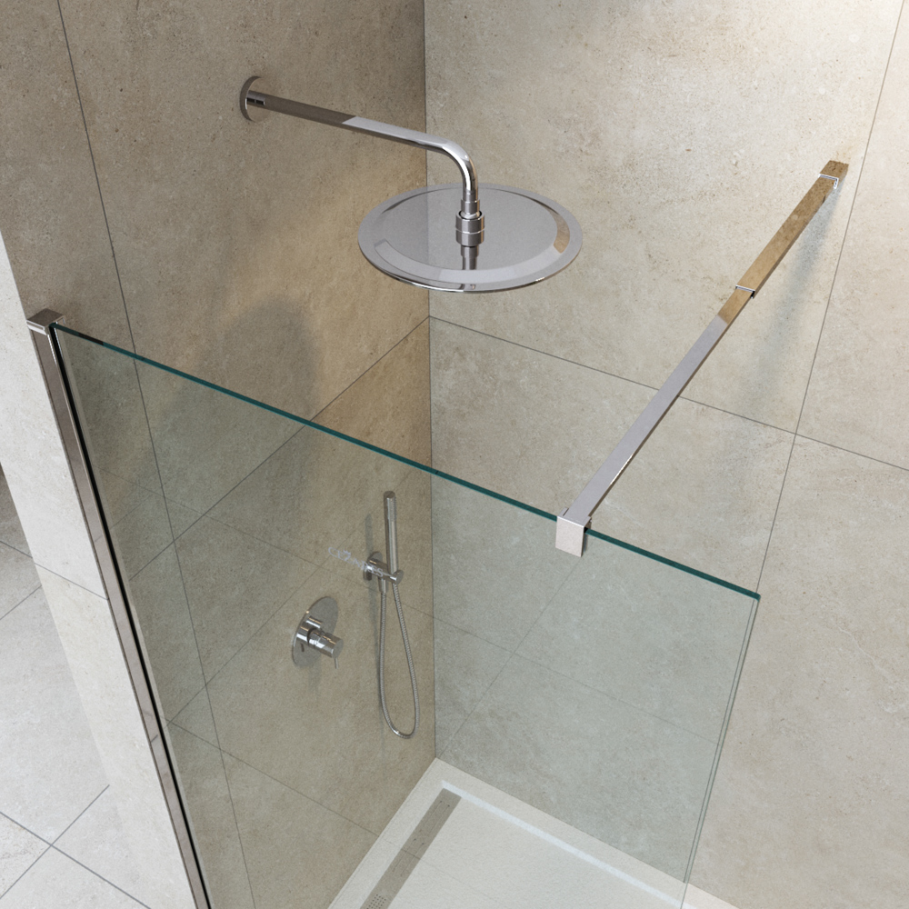 Уникальное решение для защиты ванной комнаты от брызг. Бескаркасное стекло душевой перегородки walk-in расширяет пространство и добавляет ему элегантности. Душевые