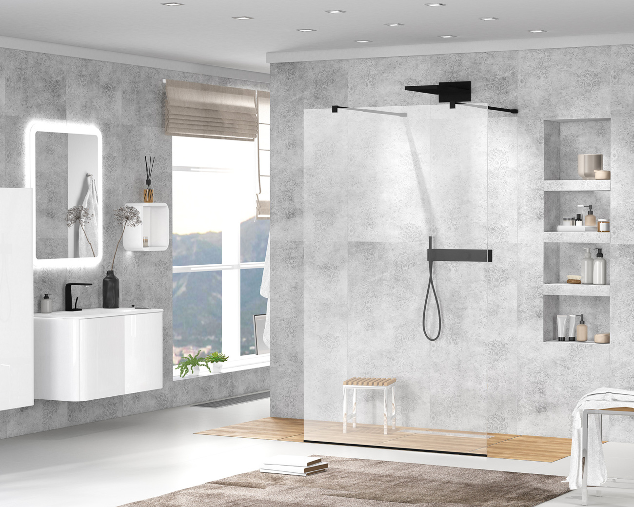 Серия LIBERTA — это неподвижные душевые перегородки, предназначенные для создания душевых зон размером до 140 см.