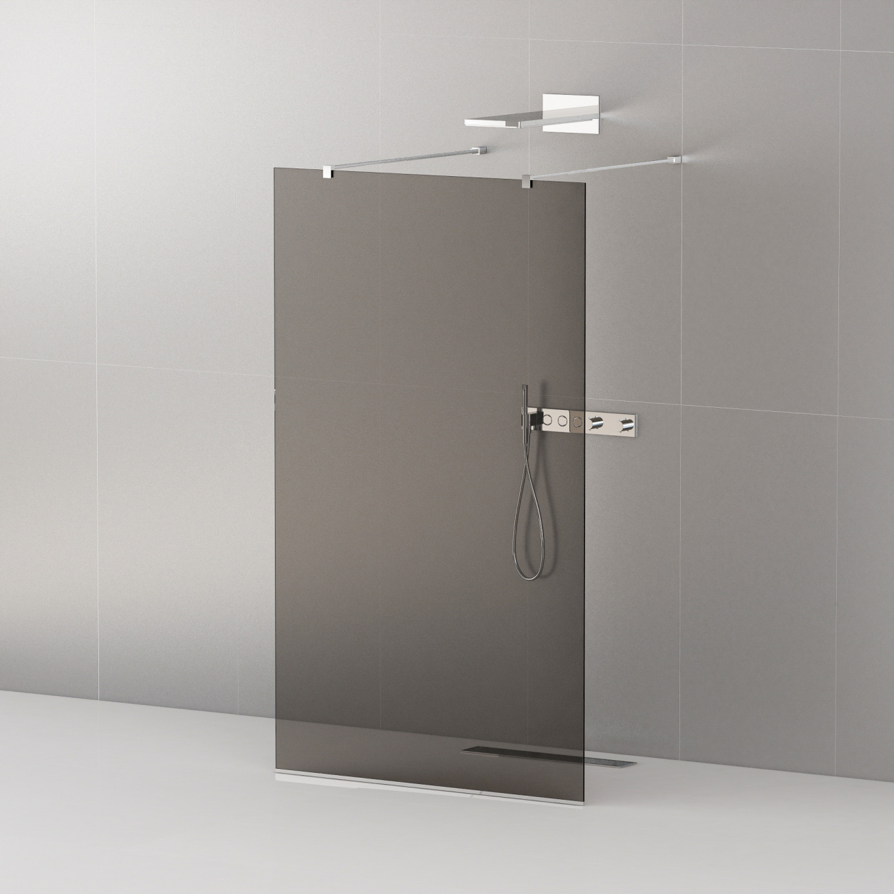 Оригинальный телескопический кронштейн позволяет регулировать ширину душевой зоны (и входа) в диапазоне 75 — 120 см.