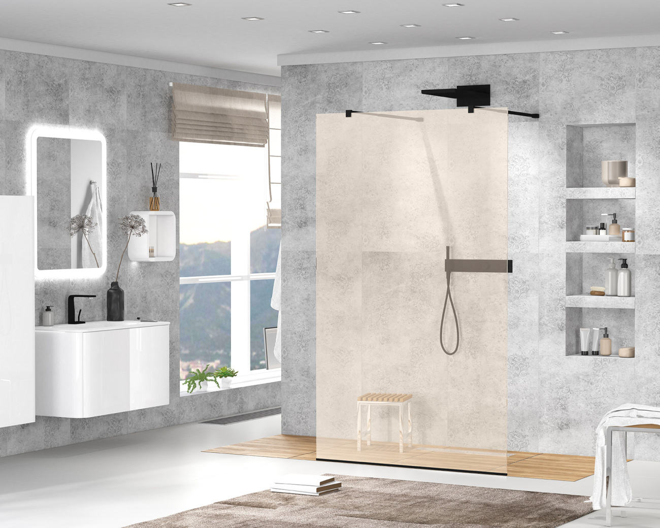 Серия LIBERTA — это неподвижные душевые перегородки, предназначенные для создания душевых зон размером до 140 см.