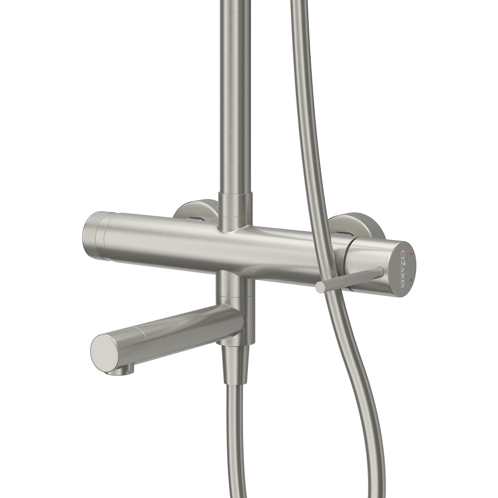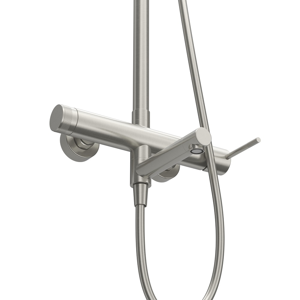 •Смеситель душевой стойки оснащен поворотным изливом с дивертором (переключателем на излив/верхний, ручной душ)
