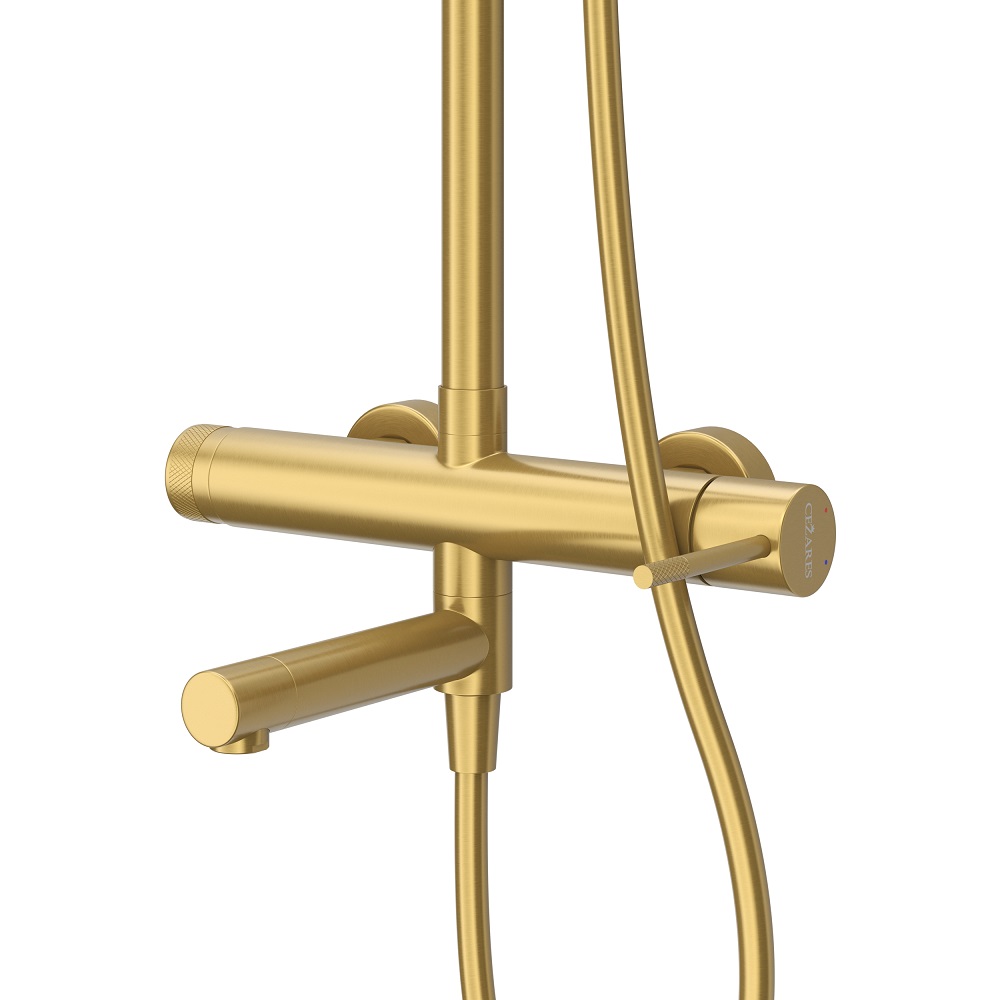 •Смеситель душевой стойки оснащен поворотным изливом с дивертором (переключателем на излив/верхний, ручной душ)