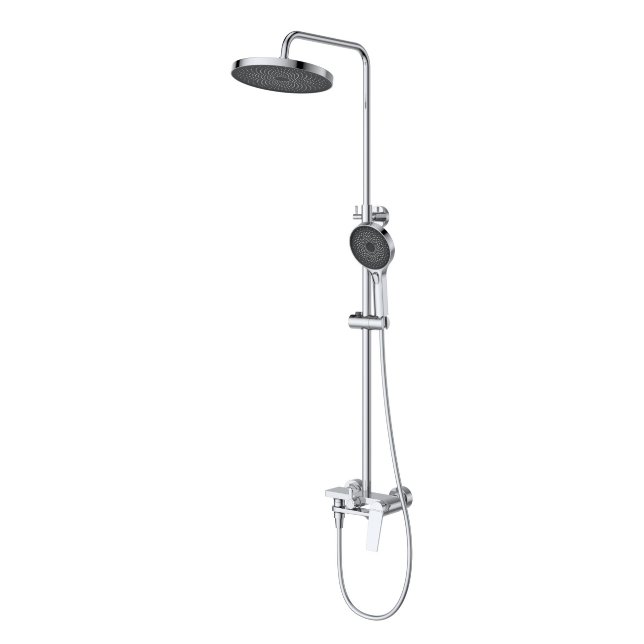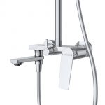 •Смеситель душевой стойки оснащен поворотным изливом с дивертором (переключателем на излив/верхний, ручной душ)
