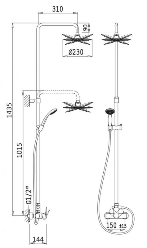 CEZARES — Душевая стойка со смесителем, с верхним и ручным душем CZR-B-CDA-01