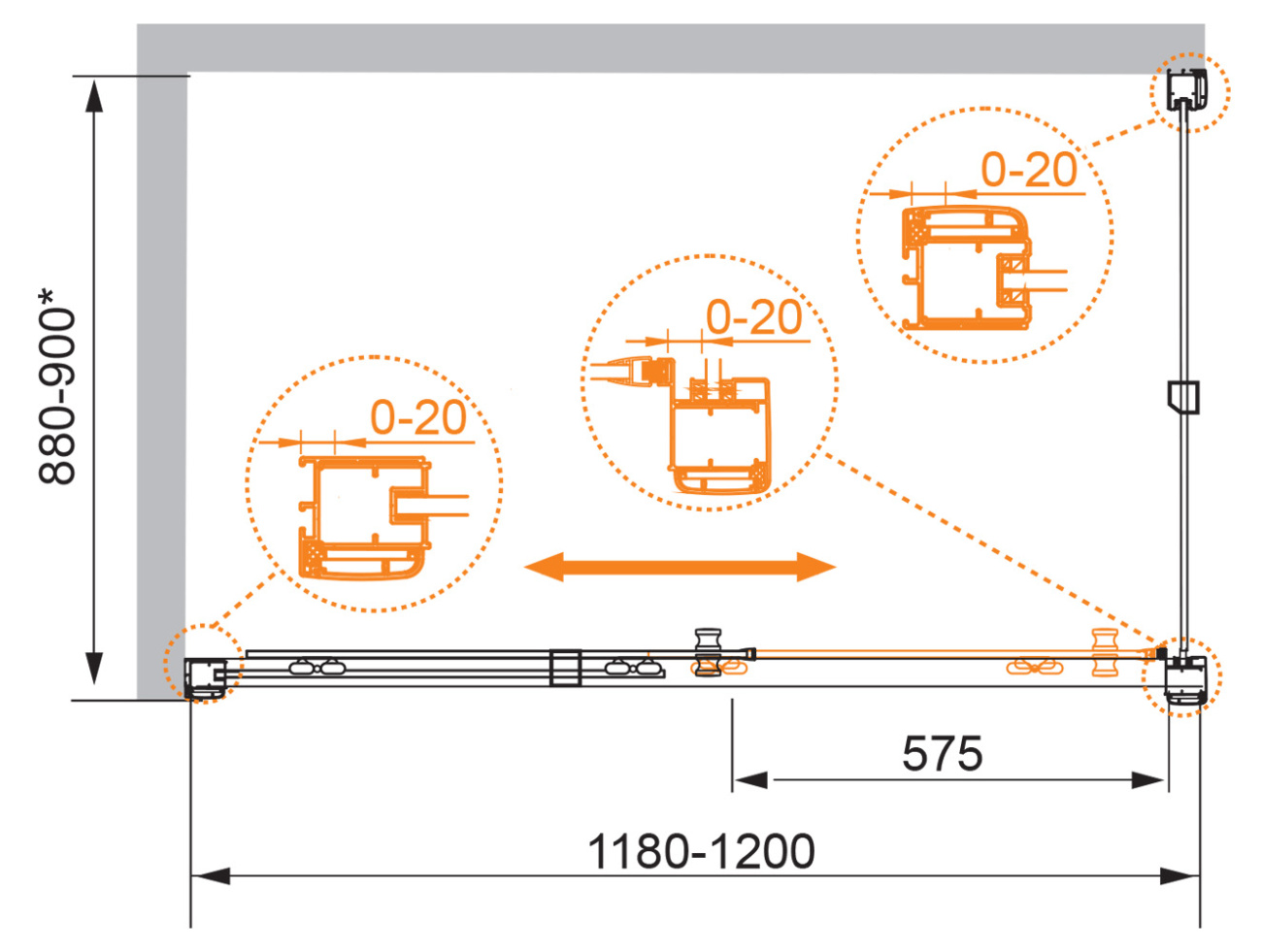 Акватек — Душевой уголок квадратный, двери раздвижные 200х90×90, оружейная сталь