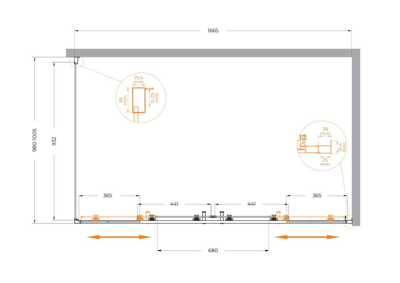 Ширина изделий до 180 см с уникальной возможностью создания еще больших размеров за счет дополнительных неподвижных элементов шириной 20 и 30 см.