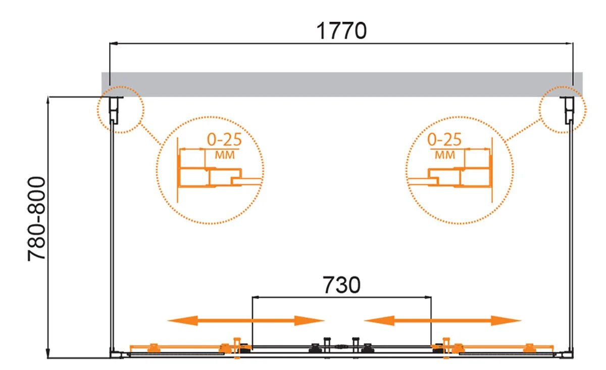 Ширина изделий до 180 см с уникальной возможностью создания еще больших размеров за счет дополнительных неподвижных элементов шириной 20 и 30 см.
