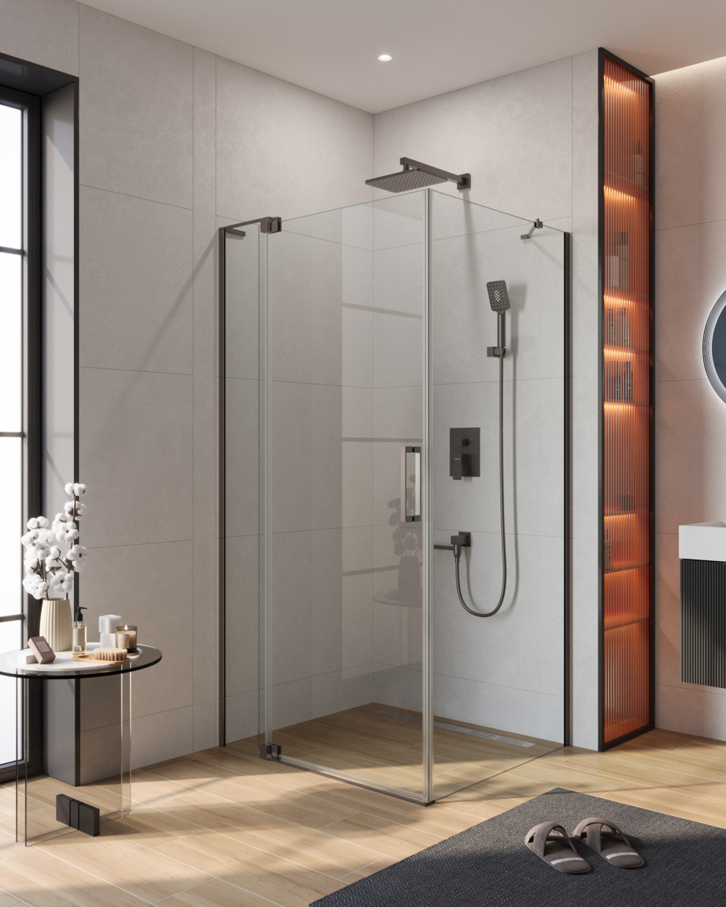 Оригинальная надёжная конструкция петли Slider позволяет регулировать ширину входа душевого ограждения в диапазоне 10 см.