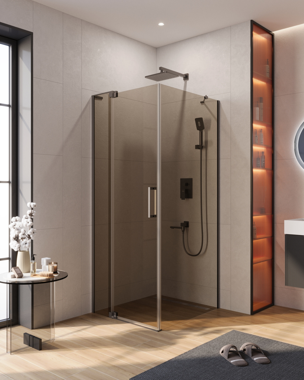 Оригинальная надёжная конструкция петли Slider позволяет регулировать ширину входа душевого ограждения в диапазоне 10 см.