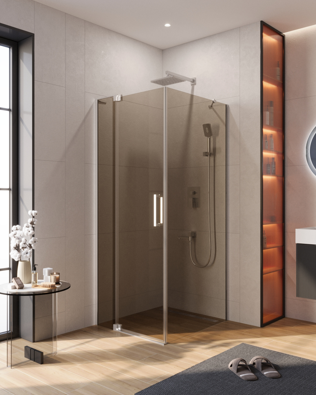 Оригинальная надёжная конструкция петли Slider позволяет регулировать ширину входа душевого ограждения в диапазоне 10 см.
