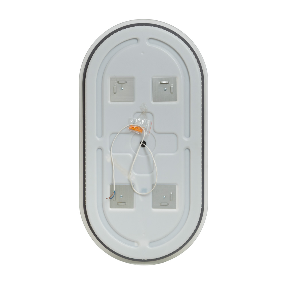 Зеркало со встроенной подсветкой, двойным сенсорным выключателем с диммером. Зеркальное полотно с пескоструйным рисунком по периметру, лента 5050, 12V 4200 К, холодный белый свет в режиме RGB — 16 млн цветов. Сенсоры включаются (белая подсветка) и выключается ( синяя подсветка) коротким нажатием(<1Сек) . Нажатием первого сенсора регулируется яркость подсветки, при нажатии второго сенсора меняется цвет подсветки. Длинным нажатием сенсора можно отключить подсветку кнопки. Зеркало имеет функцию памяти, запоминает яркость и цвет подсветки.