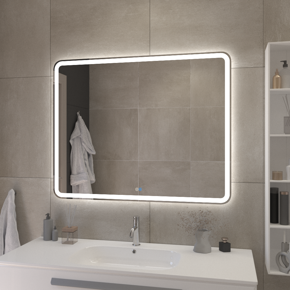 Описание Зеркало 100×70 с контурной и направленной подсветкой, с двойными сенсорным выключателем на прикосновение и функцией подогрева. Корпус изделия выполнен
