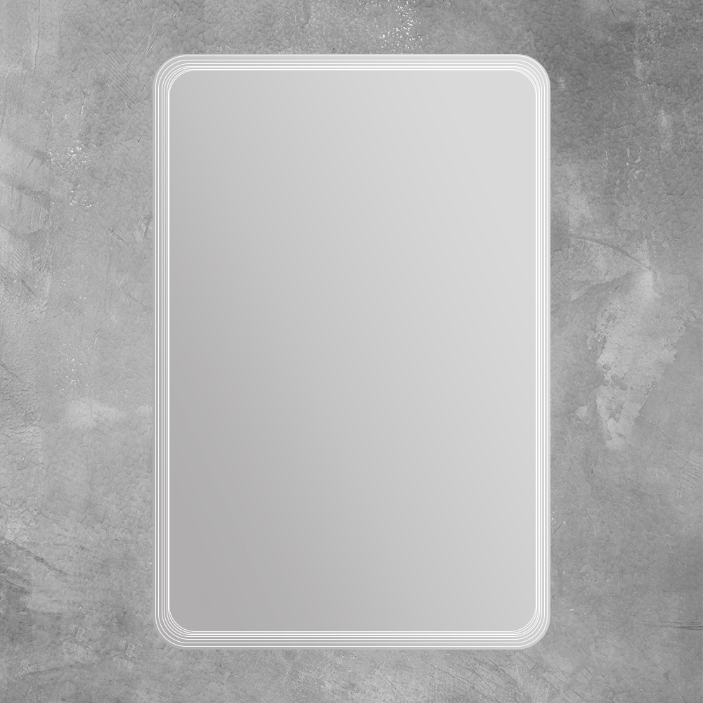 Описание Зеркало 90×80 прямоугольное с сенсорным выключателем на прикосновение и лазерной гравировкой по периметру. Корпус изделия выполнен из пластика. Cветодиодная