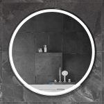 Зеркало 80×3 мм круглое в металлической раме с направленной подсветкой, двойными сенсорным выключателем на прикосновение и функцией подогрева. Корпус изделия выполнен из стали толщиной 2 мм, Установлен нагревательный мат 160*350 мм. Диммер с возможностью регулировки яркости свечения. Укомплектован светодиодной лентой SMD 3528, IP 44, 12V, 6200 К, холодный свет. Крепеж для монтажа прилагается.