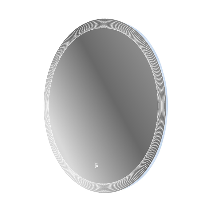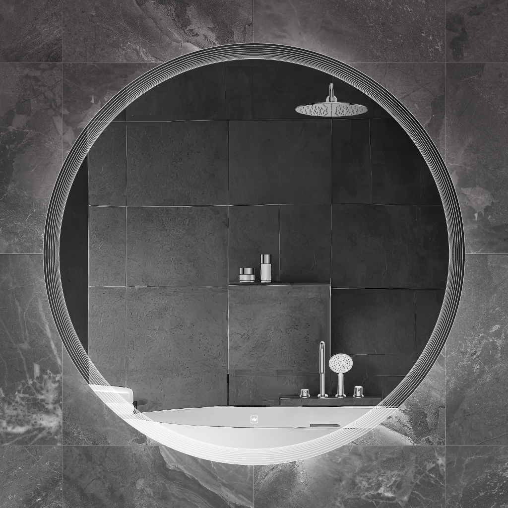 Зеркало 100×3 круглое с сенсорным выключателем на прикосновение и лазерной гравировкой по периметру. Корпус изделия выполнен из пластика. Cветодиодная лента установлена снаружи корпуса в силиконовой оболочке(повышенной влагостокости). Диммер с возможностью регулировки яркости свечения. Лента SMD 3528, IP 44, 12V, 4200 К, холодный свет. Навесы имеют регулировку по горизонтали 1.5 см. Крепеж для монтажа прилагается.