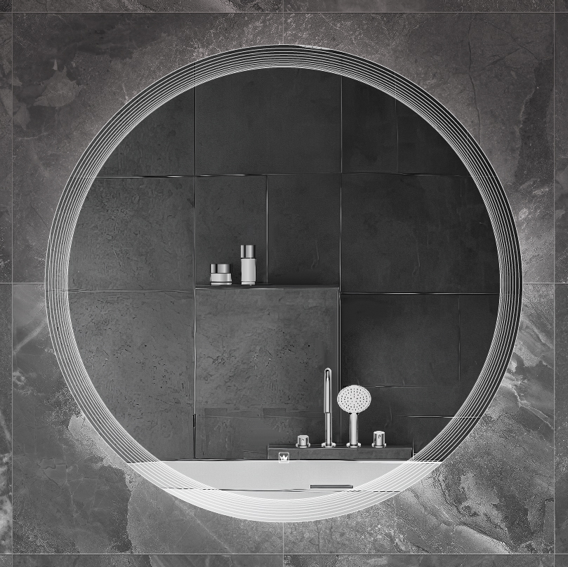 Зеркало 80×3 круглое с сенсорным выключателем на прикосновение и лазерной гравировкой по периметру. Корпус изделия выполнен из пластика. Cветодиодная лента установлена снаружи корпуса в силиконовой оболочке(повышенной влагостокости). Диммер с возможностью регулировки яркости свечения. Лента SMD 3528, IP 44, 12V, 4200 К, холодный свет. Навесы имеют регулировку по горизонтали 1.5 см. Крепеж для монтажа прилагается.