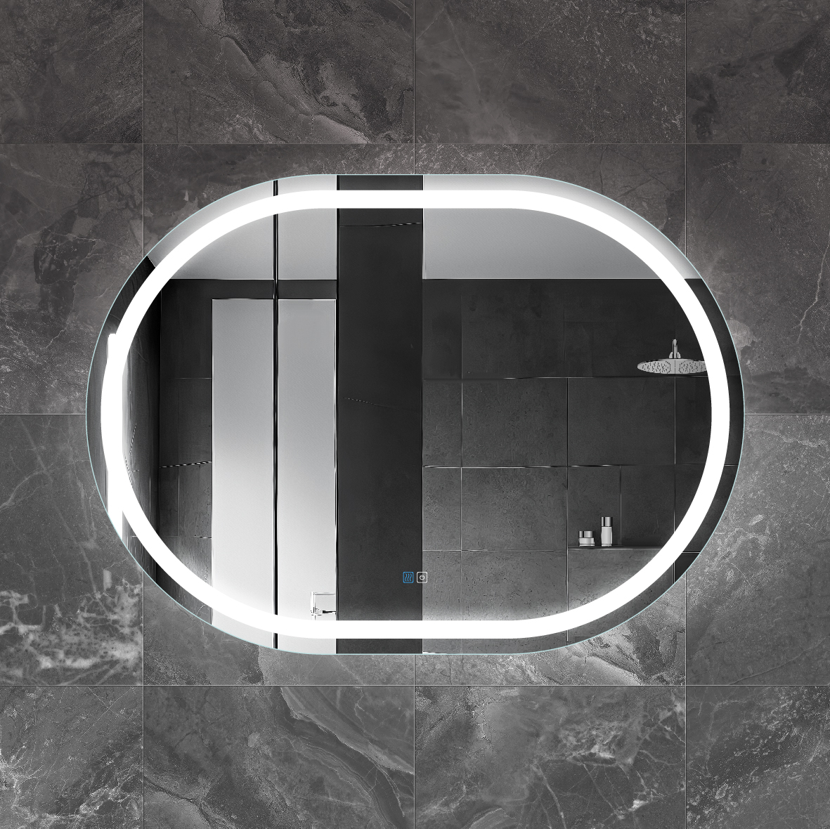 Описание Зеркало 100×80 с контурной и направленной подсветкой, с двойными сенсорным выключателем на прикосновение и функцией подогрева. Корпус изделия выполнен