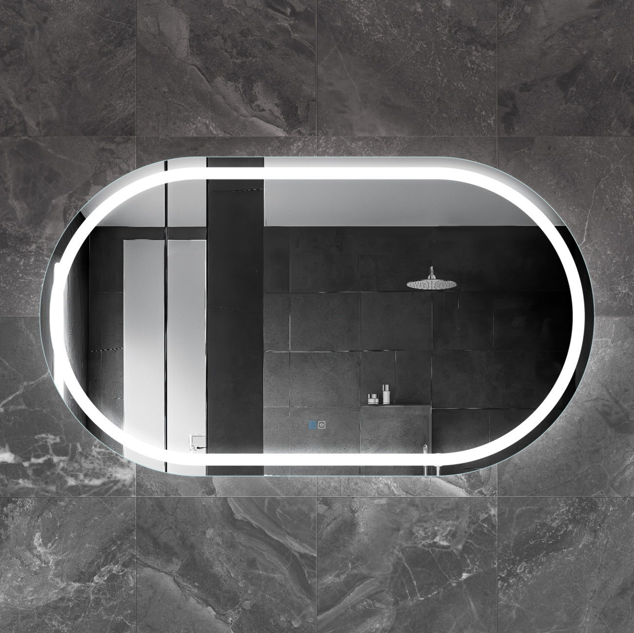 Описание Зеркало 100×80 с контурной и направленной подсветкой, с двойными сенсорным выключателем на прикосновение и функцией подогрева. Корпус изделия выполнен