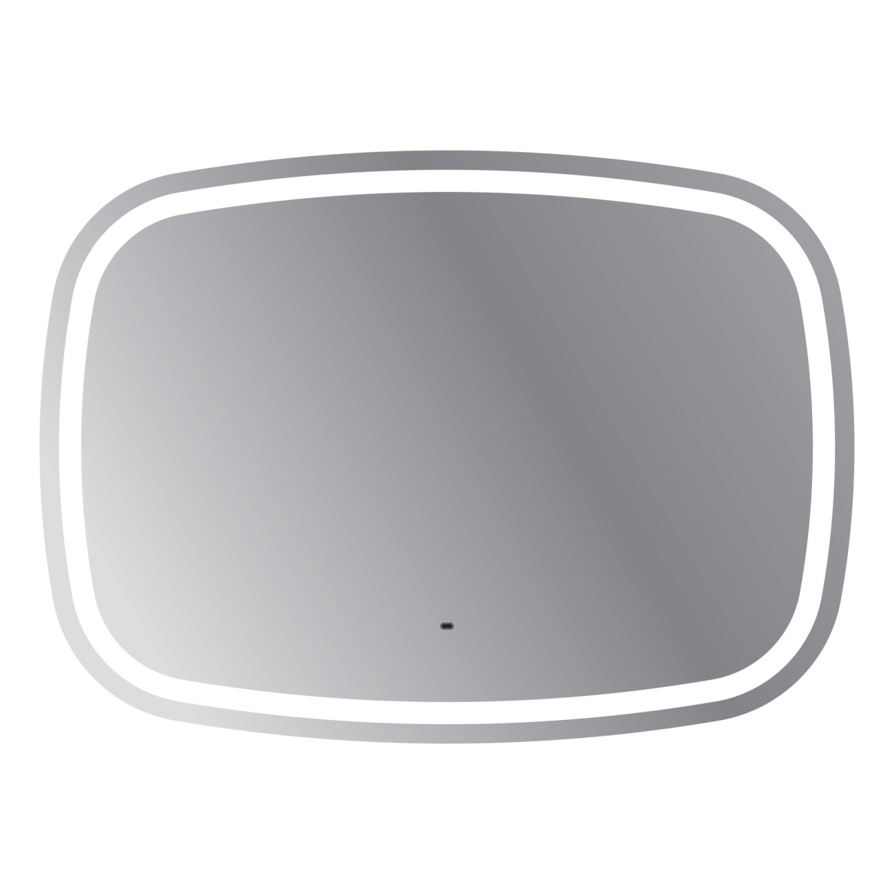 Зеркало 110×80, реверсное, с контурной и направленной подсветкой. Корпус изделия выполнен из светорассеивающего пластика, с бесконтактным сенсорным выключателем расположенным за зеркальным полотном. Диммер с возможностью регулировки яркости свечения. Укомплектован светодиодной лентой SMD 3528, IP 44, 12V, 6200 К, холодный свет. Крепеж для монтажа прилагается.