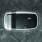 Зеркало 150×80, реверсное, с контурной и направленной подсветкой. Корпус изделия выполнен из светорассеивающего пластика, с бесконтактным сенсорным выключателем расположенным за зеркальным полотном. Диммер с возможностью регулировки яркости свечения. Укомплектован светодиодной лентой SMD 3528, IP 44, 12V, 6200 К, холодный свет. Крепеж для монтажа прилагается.