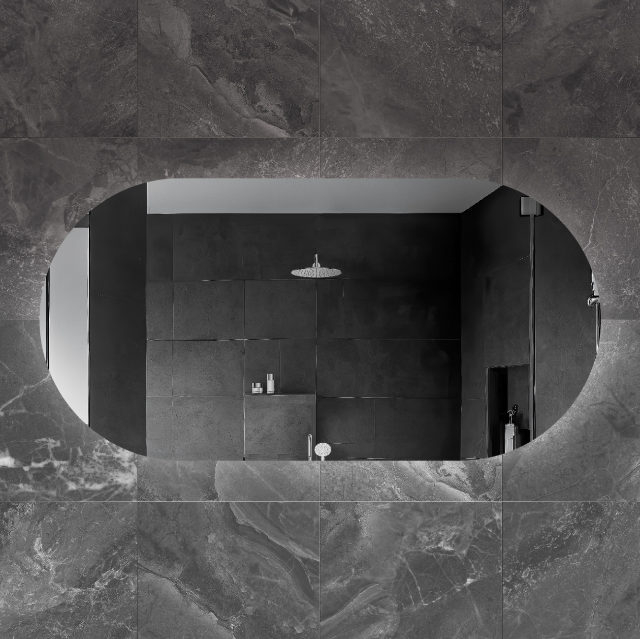 Зеркало 140×70 овальное, реверсное с контурной подсветкой. Корпус изделия выполнен из пластика, с бесконтактным сенсорным выключателем, расположенным за зеркальным полотном. Cветодиодная лента установлена снаружи корпуса в силиконовой оболочке(повышенной влагостокости). Диммер с возможностью регулировки яркости свечения. Лента SMD 3528, IP 44, 12V, 4200 К, холодный свет. Крепеж для монтажа прилагается.