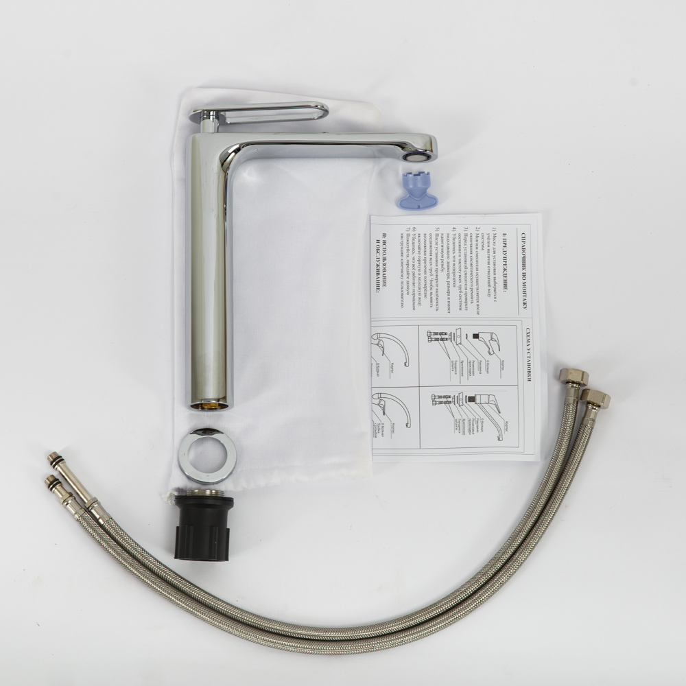 Комплект поставки • Смеситель • Гибкая подводка 60см • Монтажный комплект • Слив-перелив и донный клапан в комплект не