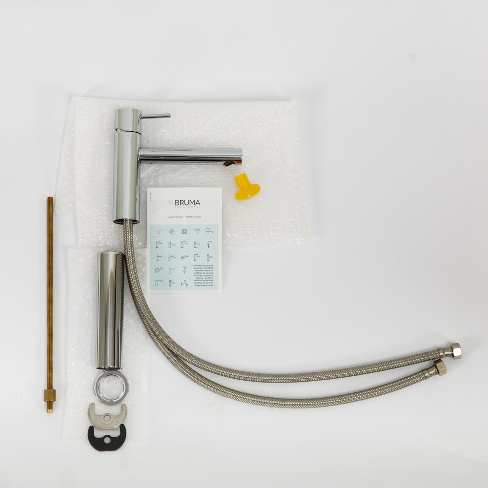 Комплект поставки • Смеситель • Гибкая подводка 60см • Ключ для снятия аэратора • Монтажный комплект • Слив-перелив и