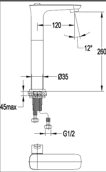 Комплект поставки • Смеситель • Гибкая подводка 60см • Монтажный комплект • Слив-перелив и донный клапан в комплект не