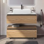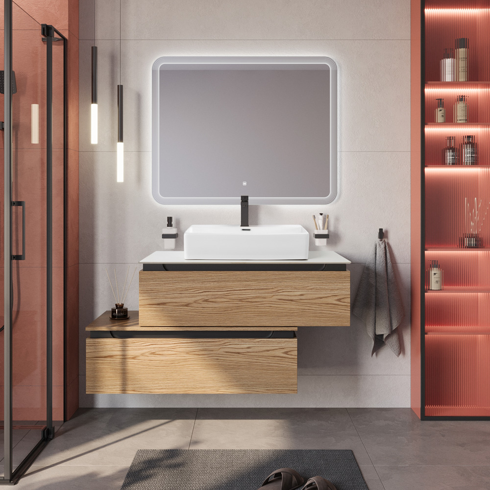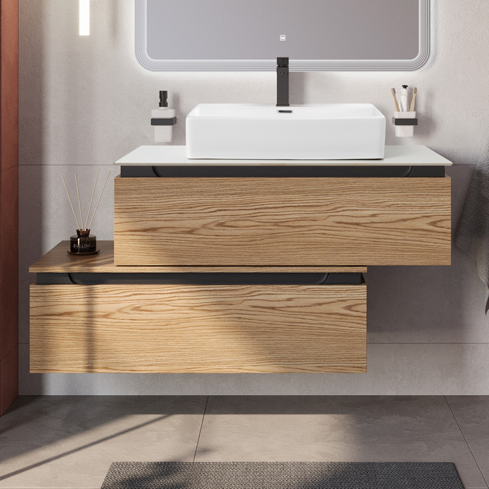 CEZARES — Тумба со столешницей подвесная и нижней тумбой SLIDER 100 Дуб тангент, столешница SLD-100/48-BO