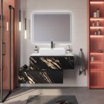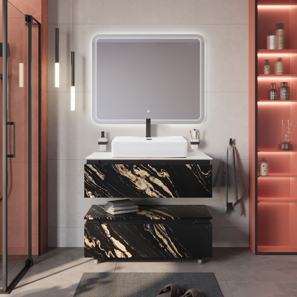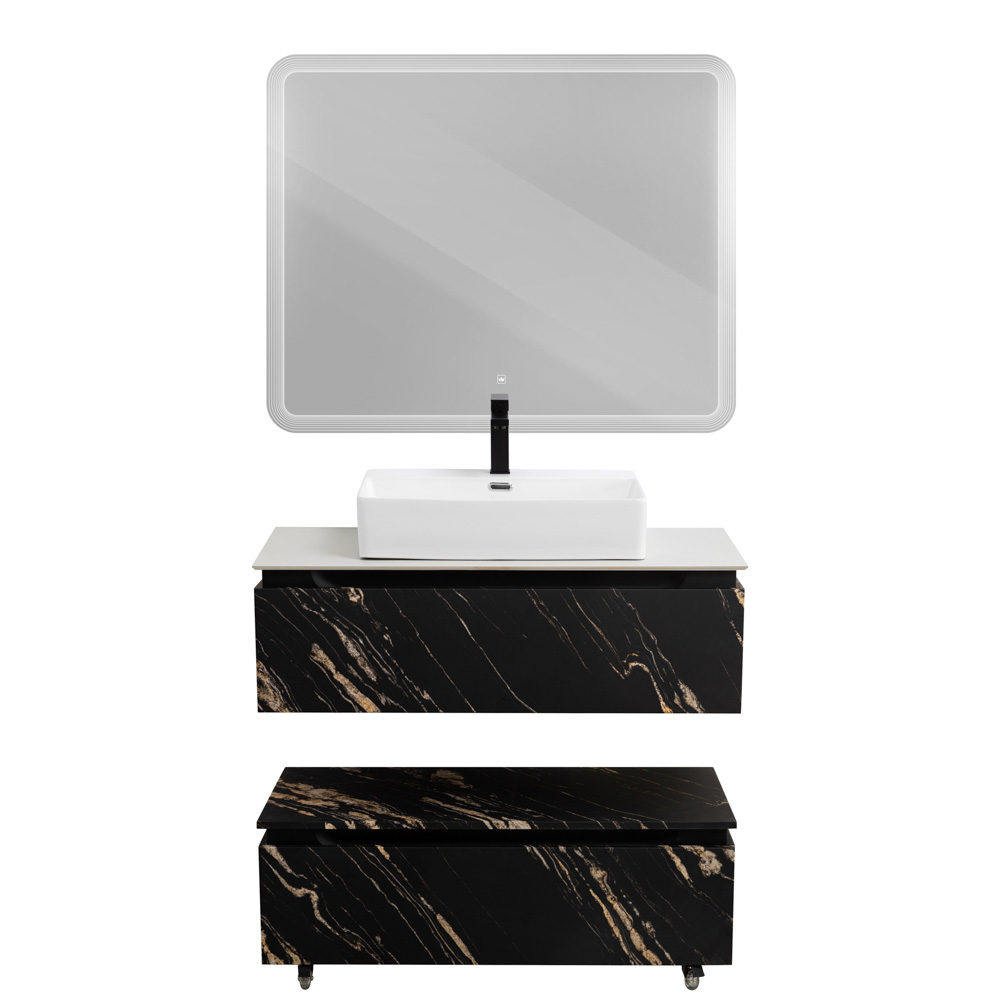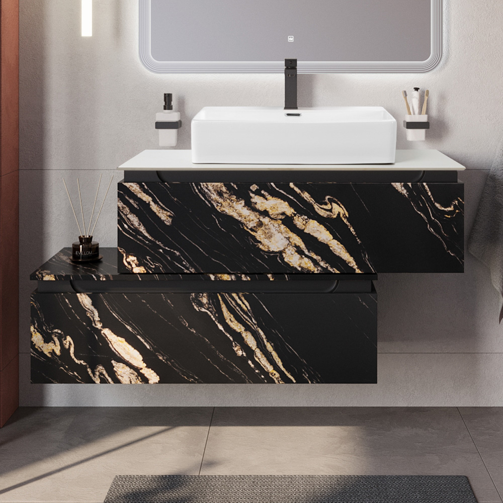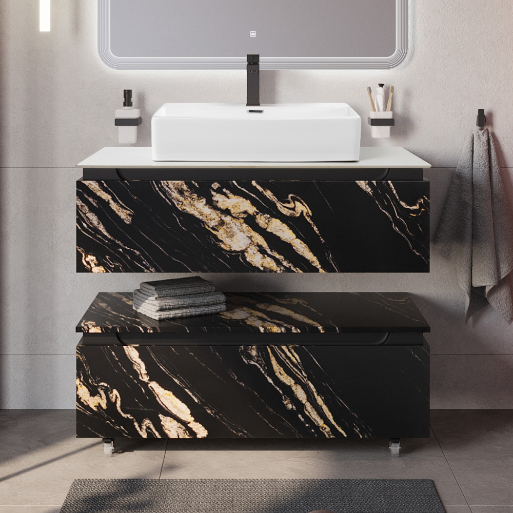 CEZARES — Тумба со столешницей подвесная и нижней тумбой SLIDER 100 Чёрный фьюжн, столешница SLD-100/48-BO