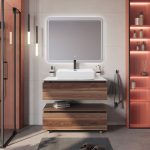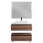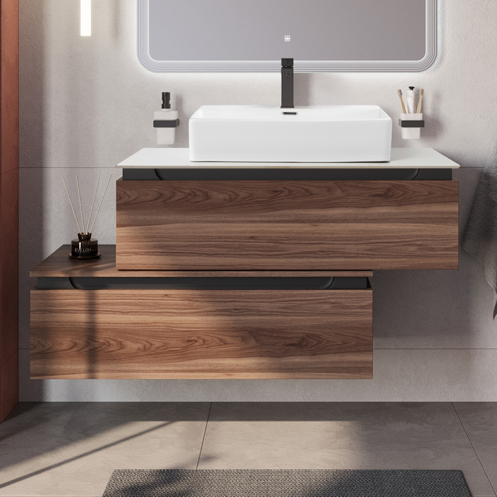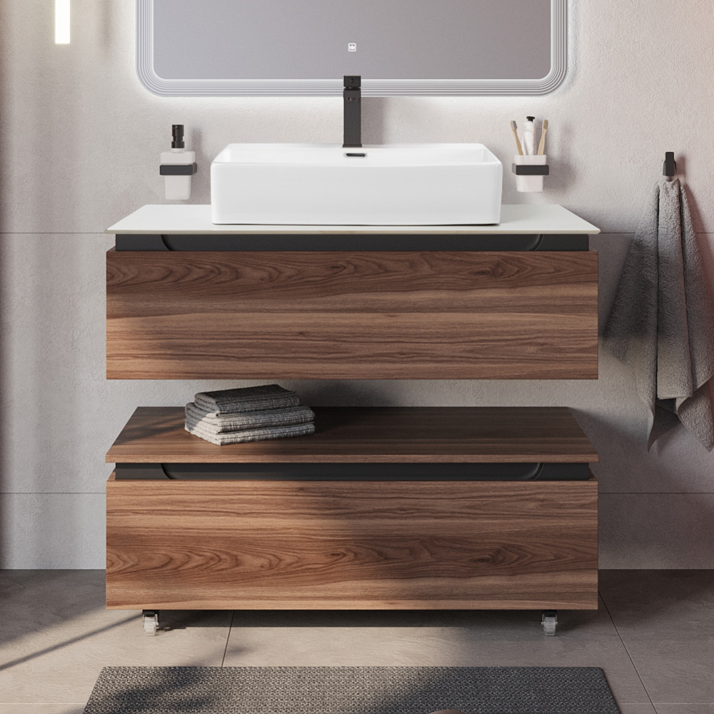 CEZARES — Тумба со столешницей подвесная и нижней тумбой SLIDER 100 Орех дымчатый, столешница SLD-100/48-BO